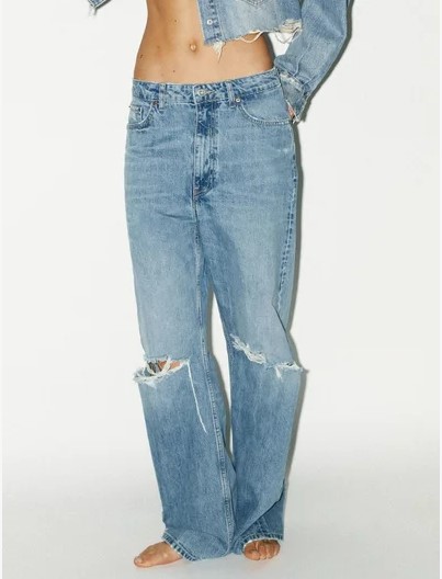 «Широкие джинсы отлично смотрятся с короткими жакетами, топами и обувью на платформе. Чего точно стоит избегать, так это объемных мешковатых худи: иначе вы просто можете потеряться в ткани», — комментирует наш эксперт.