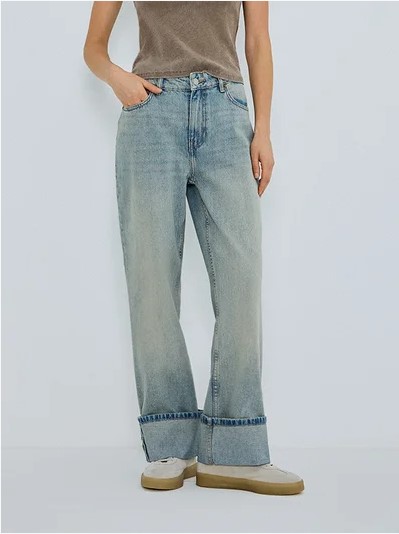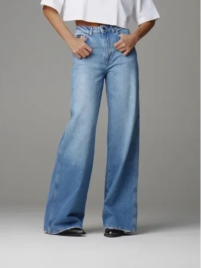 Отличный вариант для расслабленного образа. Удачные сочетания получаются с кроп-топами и объемными жакетами. Широкие джинсы могут быть на средней и низкой посадке. Рассмотрите не только синие, серые, черные модели, добавьте яркий акцент с помощью цветной пары.